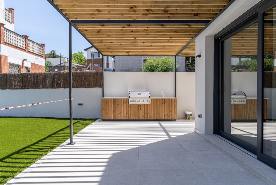 Destaca por sus altas calidades, la amplitud de todas sus estancias, en especial el salón comedor con cocina abierta de 60 m2. Desde éste, salida directa al jardín. En el jardín, un amplio porche con cocina – bbq de exterior, piscina y aparcamiento con pérgola. Parcela de 500m2 Aislamiento tipo sate. Placas solares. Climatización por aerotermia y domótica (altavoces, persianas, iluminación, alarma, temperatura…).