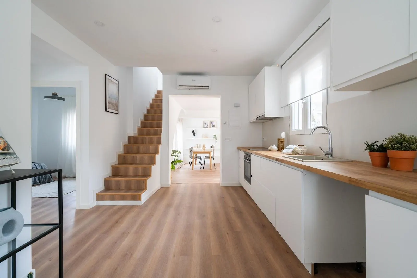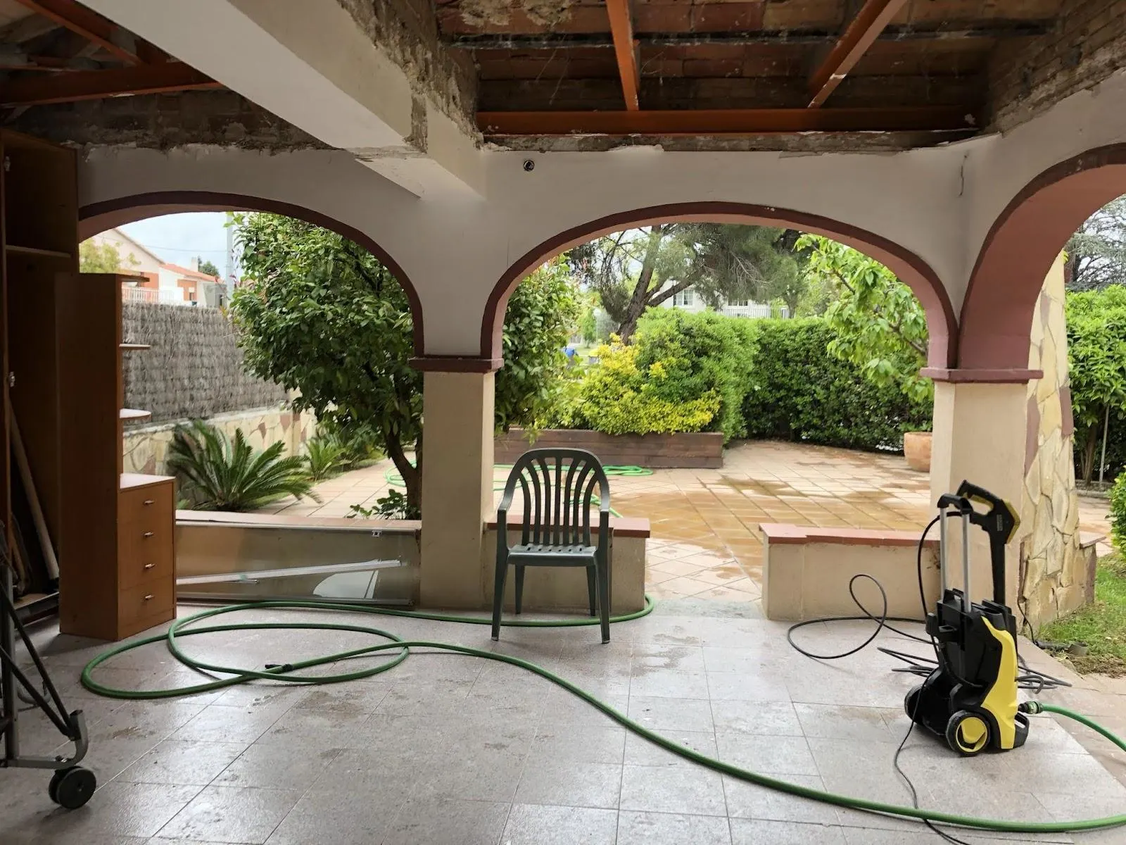 Vivienda de unos 80m2 con un gran porche de verano cubierto. Parcela de 500m2 con una piscina antigua. El proyecto consistió en rehabilitar completamente, tanto en el interior como en el exterior, cerrando el porche de verano para ganar más m2 a la vivienda. Puesta a punto del jardín y la piscina. La vivienda de 2 habitaciones únicamente, pasó a ser de 4 habitaciones y 2 baños (1 suite). El jardín, con zona chill out y piscina. Un anexo con lavadero exterior.